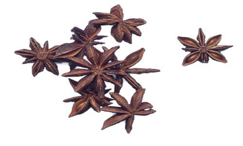 5.โป๊ยกั๊ก เป็นเครื่องเทศจากจีน ส่วนที่ใช้คือ ผลแก่ตากแห้ง ลักษณะผลเป็นรูปดาวแปดแฉก สีน้ำตาลอมแดง มีกลิ่นหอมอ่อนๆ รสเผ็ดหวาน
